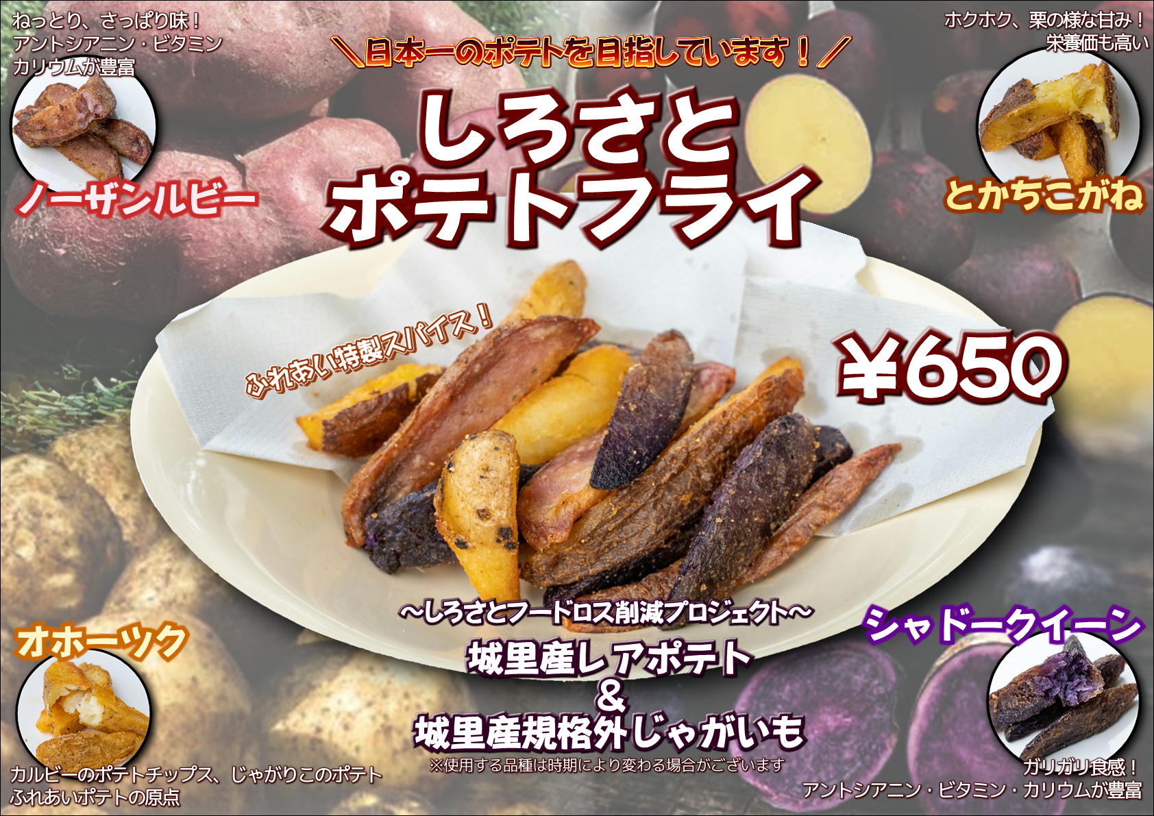 以前から人気の高かったふれあいフライドポテトを地元城里産のレアポテトにバージョンアップ!