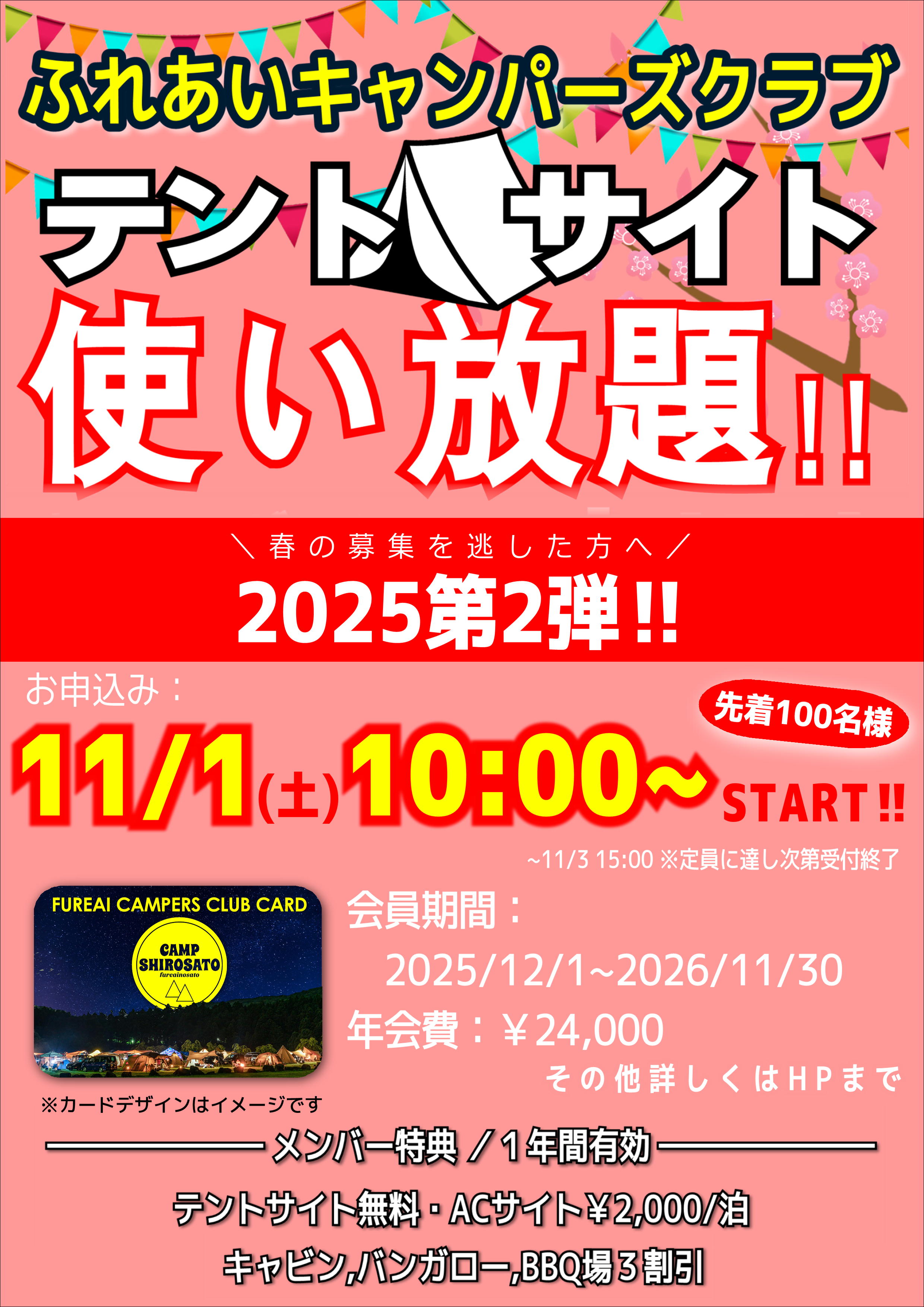 【2025/11/1】『キャンパーズクラブ2025《第二弾》』受付開始のお知らせ