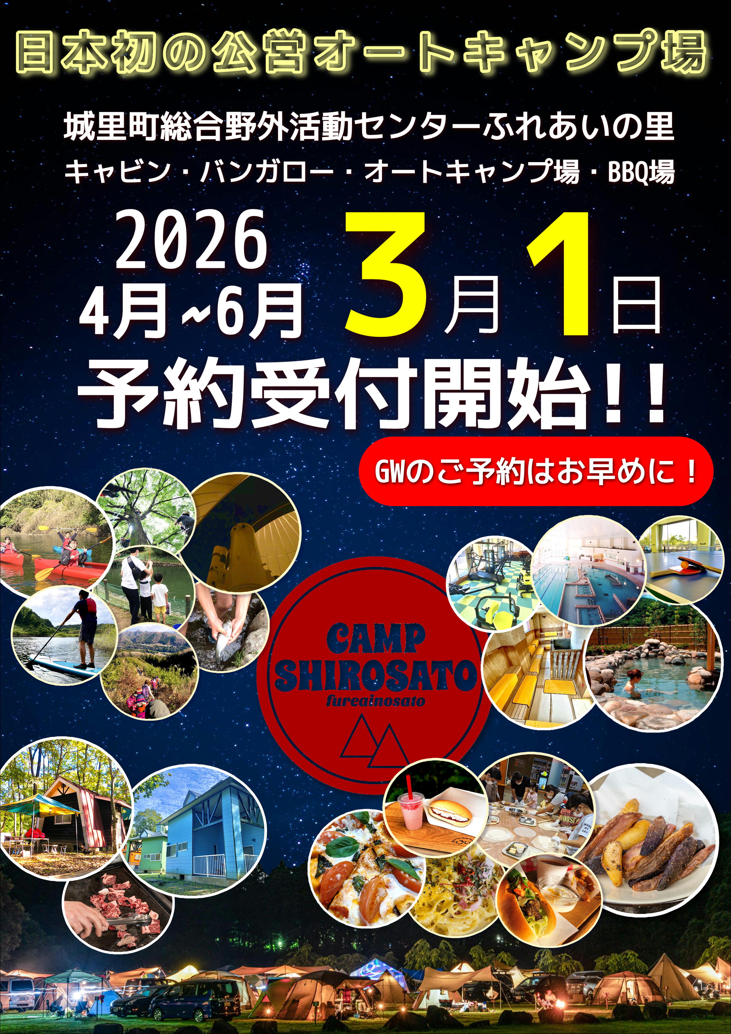 【2026/3/1】R8年度(4/1~6/30)キャンプ場利用予約受付開始!!ゴールデンウィークのご予約はお早めに!